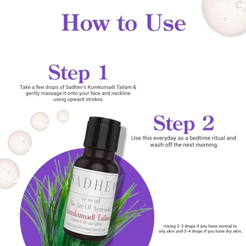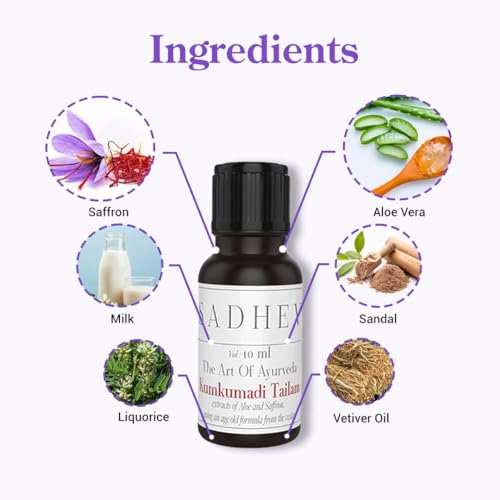 Design:KumkumadiTailamThe art saffron was a treasured beauty secret used by rani samyukta prithiviraj chauhan queen who was known for her intoxicating beauty. legend has tales of the queen secretly sourcing a rich and rare ingredient from the valleys of Kashmir. The lovely red saffron was used to create a magic potion that she used as part of her nightly beauty ritual. sadhev kumkumadi tailam is an exotic night serum that imparts a golden vedic glow by delicately combining rich ingredients like saffron aloe vera sandal and vetiver along with the essence of a 200 year old ayurvedic wisdom.