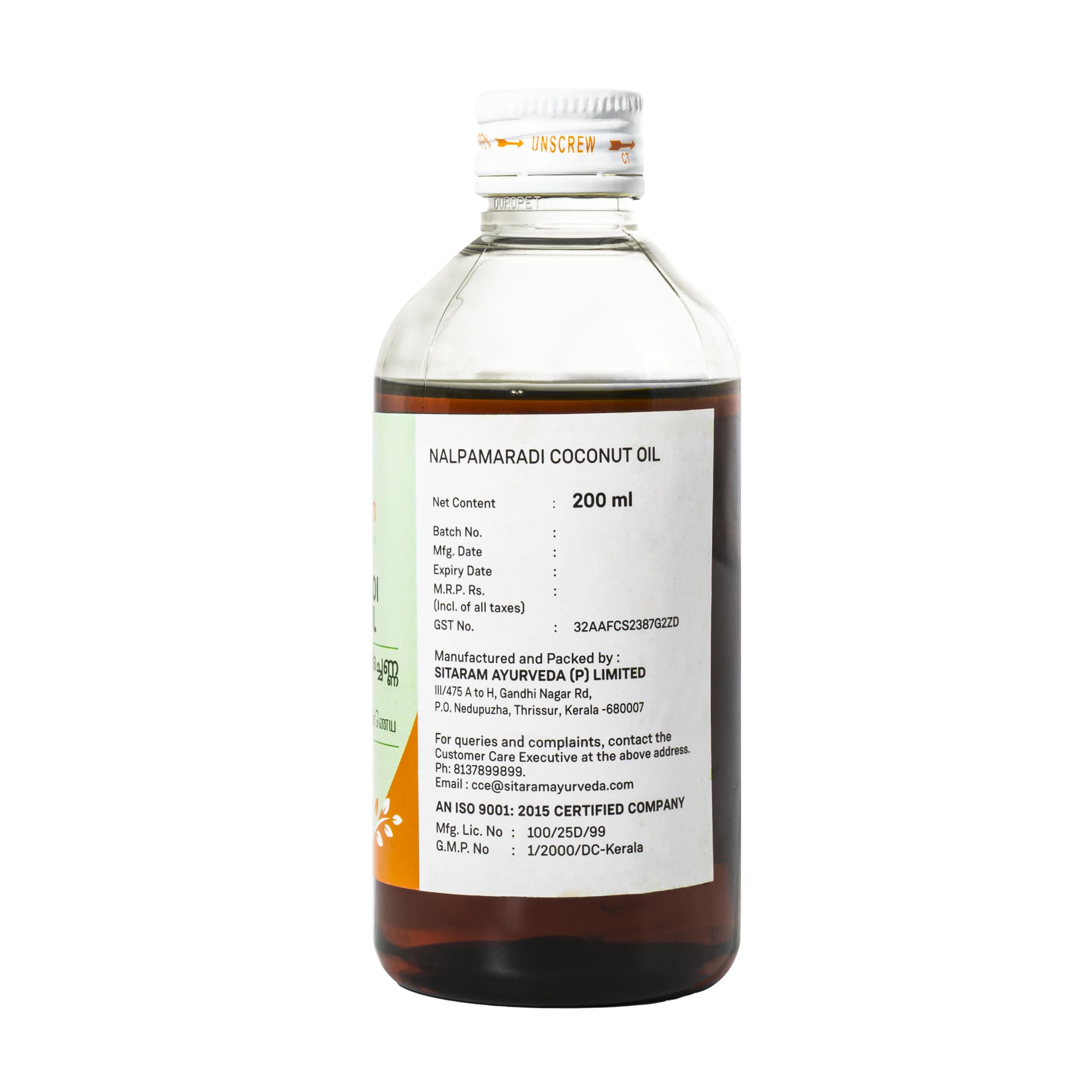 Sitaram Ayurveda Nalpamaradi Thailam 200 ML | Kerala Ayurvedic Nalpamaradi Oil For Skin Brightening Treatment