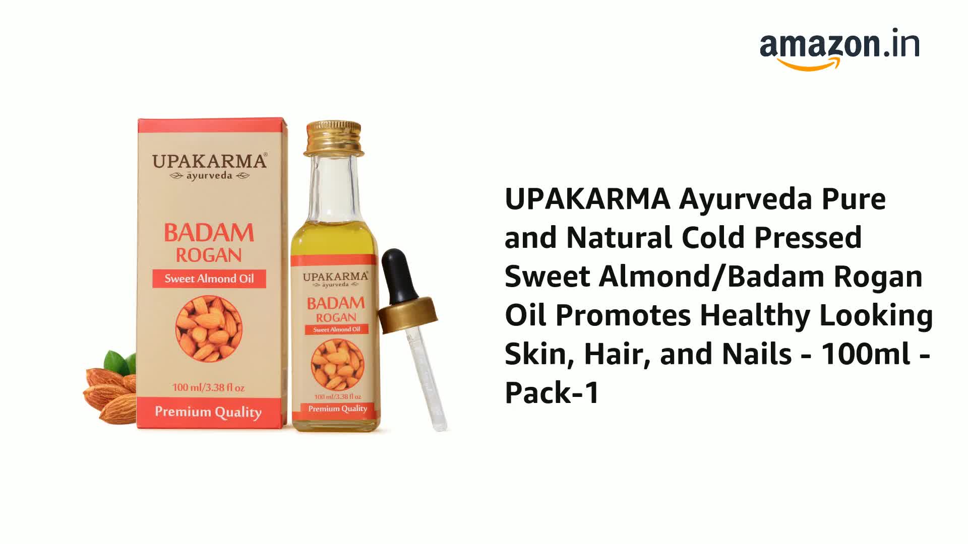 • Upakarma Badam Rogan oil nourishes skin naturally embracing you with skin-loving vitamin e and nutrient-rich fatty acids to lock-in moisture. You can also use almond oil for hair and nails