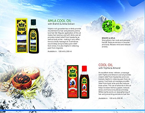 Vitamin rich gooseberries or Amla add shine to the hair and is suitable for all hair types especially for weakened hair. Regular application of this oil makes hair soft and controls dryness. Amla cool oil also has a soothing fragrance which also makes it a great body massage oil.