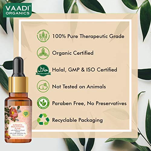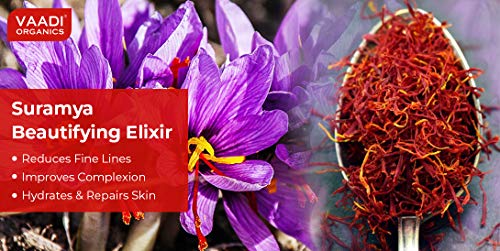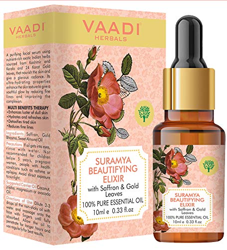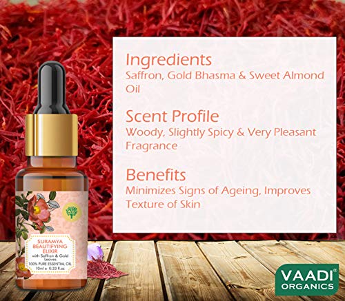 VAADI HERBALS Suramya Beautifying Elixr (Pure Mix of Saffron, 24k Gold Leaves & Sweet Almond Oil) - Reduces Fine Lines, Improves Skin Complexion & Gives a Natural Glow, 10 ml