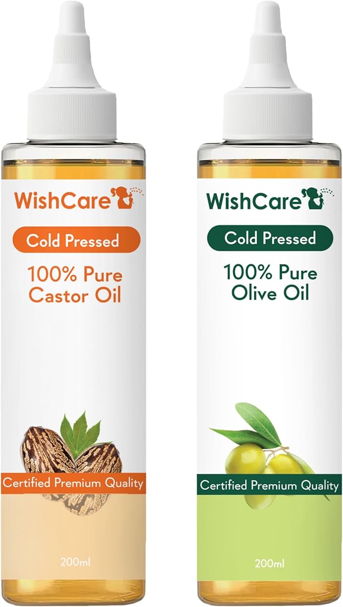 Wishcare Cold Pressed Castor & Olive Carrier Oil - 200Ml Each