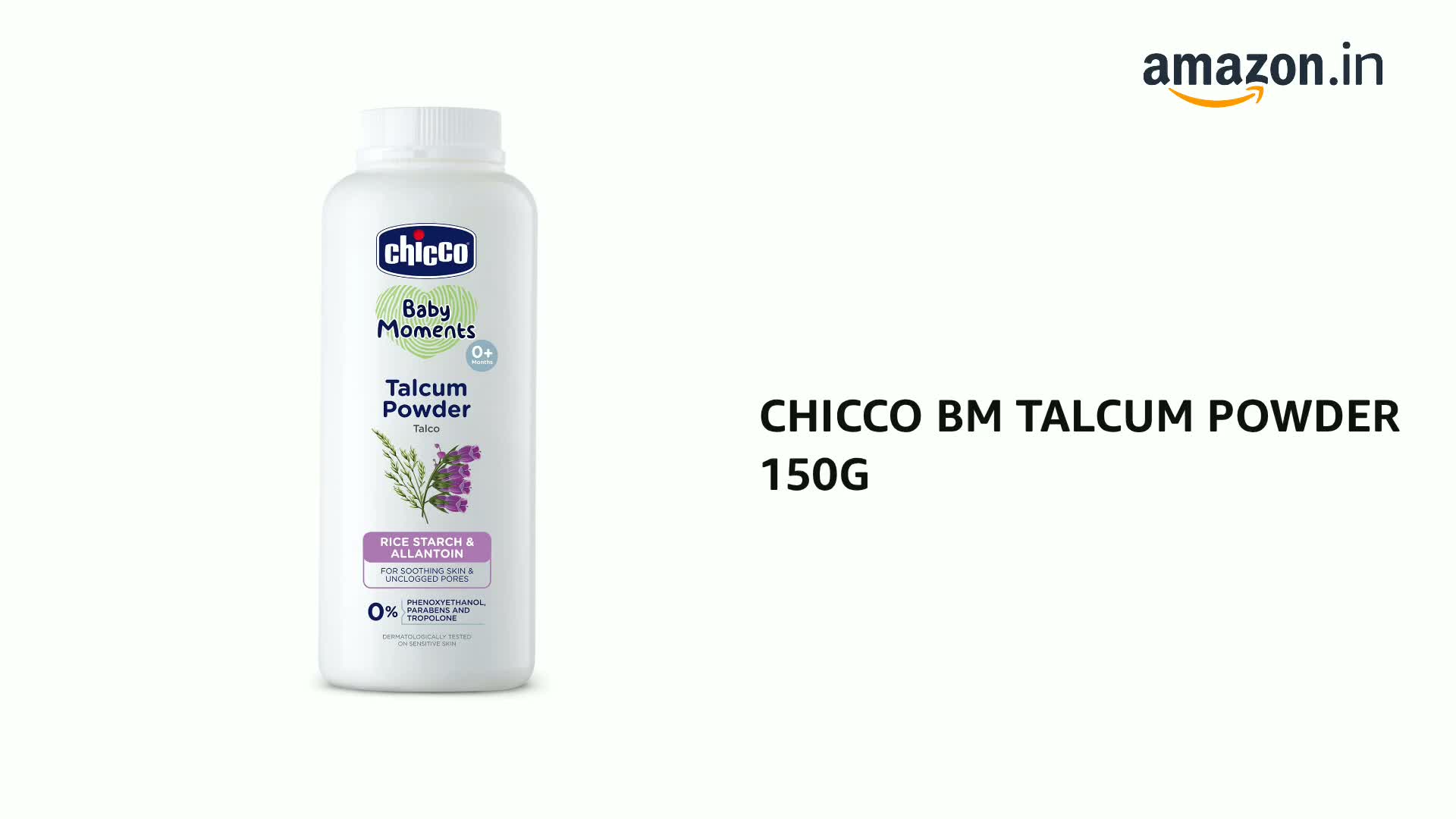 The all new Chicco Baby Moment Talcum Powder has a special Rice starch formula for protecting soothing and refreshing babyâs skin. Its New Advanced formula which creates a natural protective barrier that avoids rash formation. It also supports in skin renewal process smoothens skin by preventing possible irritations. It helps to maintain skinâs moisture balance thus keeping babyâs skin refreshed & soft. o Quick-Absorbing properties: Does not clog babyâs skin pores & gets quickly absorbed for faster action.