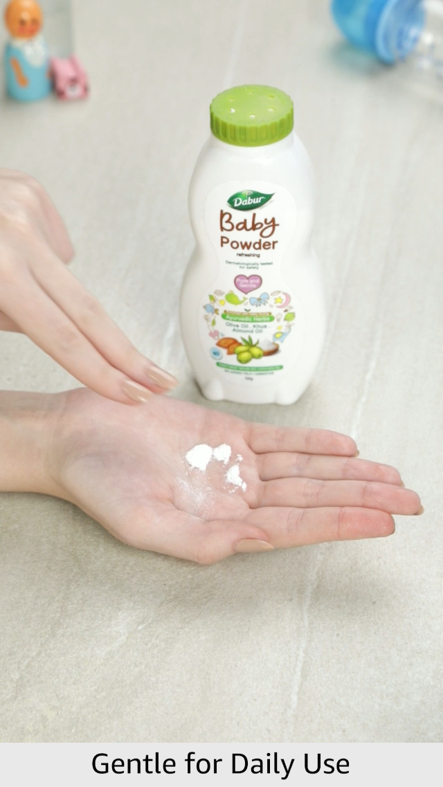 Dabur Baby Refreshing Powder is enriched with baby loving ayurvedic herbs and has been carefully crafted for pure and gentle skin of babies. Enriched with Khus extract and Oat Com Powder keeps baby's skin cool and fresh. It also has Amba Haldi which is known for its anti-irritant properties and shields baby's skin from rashes and also contains Olive oil and Almond Oil which helps provide gentle nourishment to baby's skin and keeps it soft & moisturized.