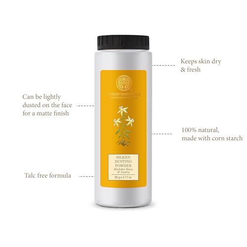 Forest Essentials Silken Dusting Powder Mashobra Honey & Vanilla | Natural Talc Free Powder with Vanilla & Honey| Highly Absorbent & Refreshing
