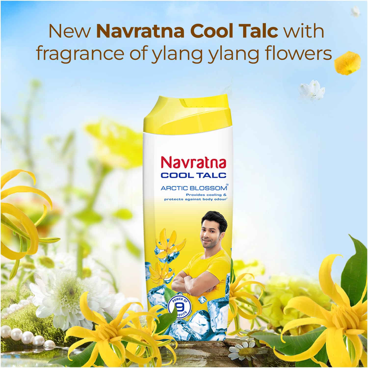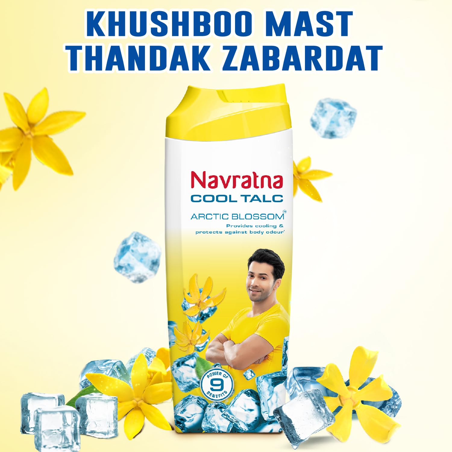 Navratna Cool Arctic Blossom Talc | Instant Sweat Absorption and Cooling Relief |Body Odour Protection | Long Lasting Freshness and Fragrance Thanda Thanda Cool Cool Talcum powder 400gm
