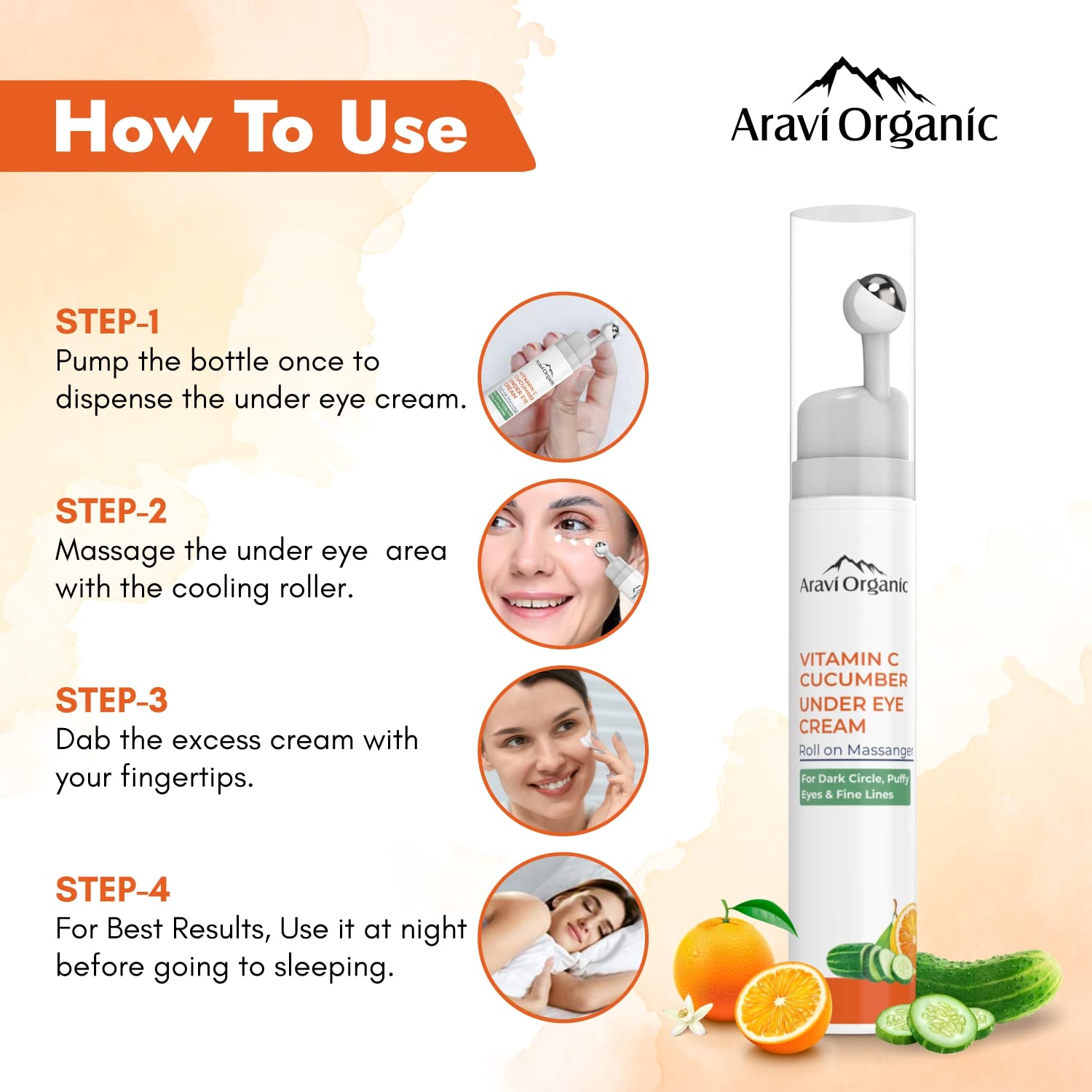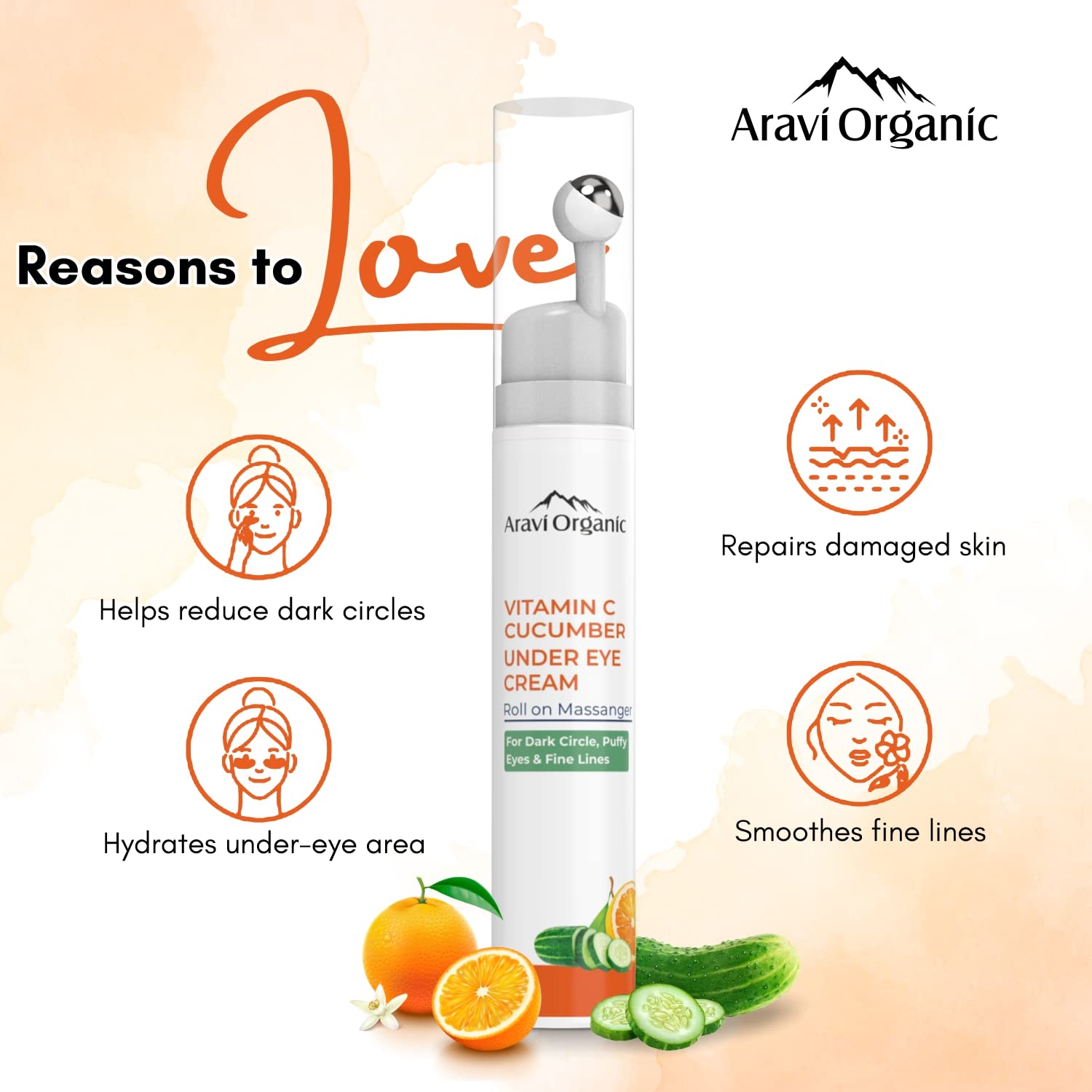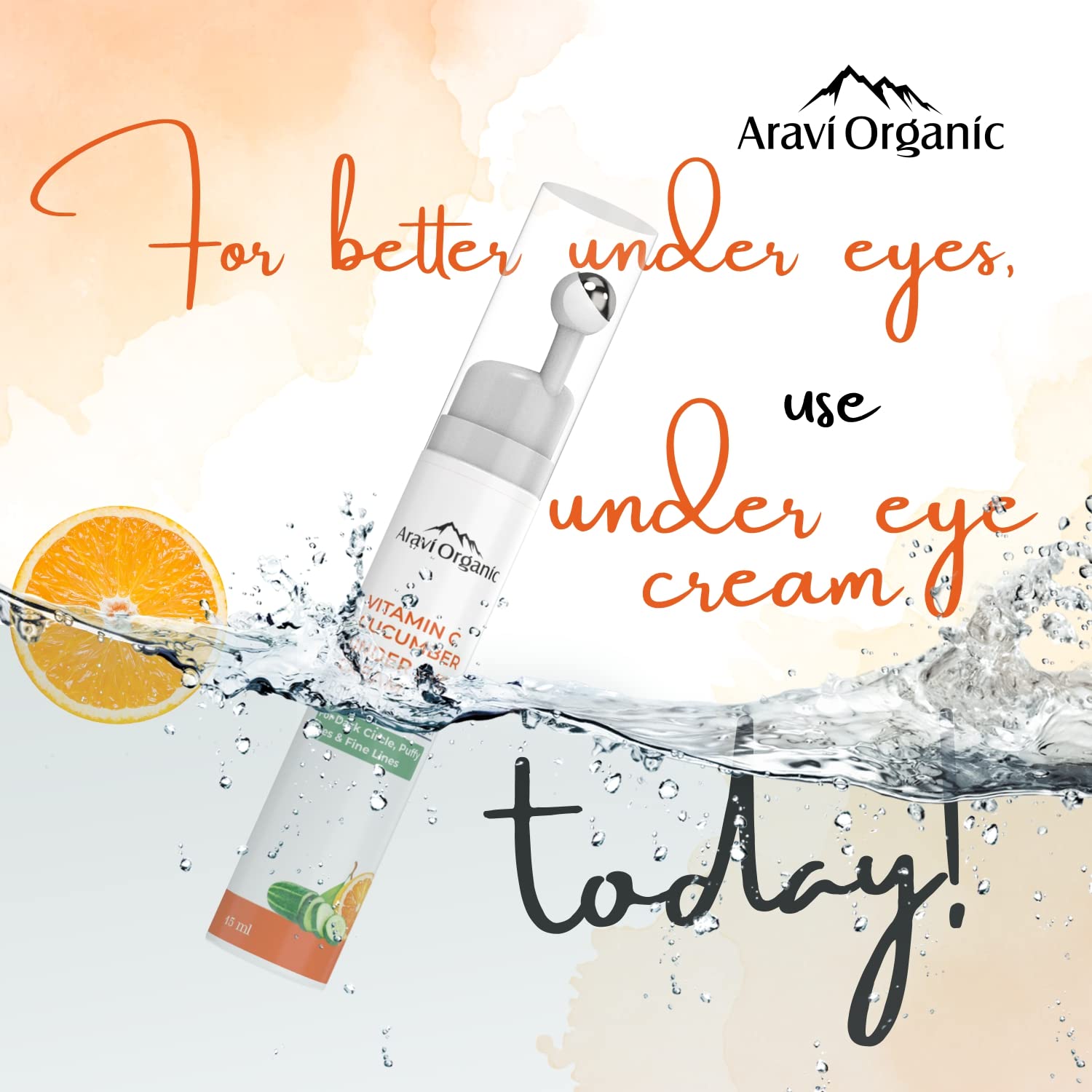 HomeHealth & PersonalSkin CareEye CareEye CreamsAravi Organic Vitamin C Under Eye Cream For Dark Circles Wrinkles & Fine Lines - With Vitamin C Cucumber and Hylunoric Acid - Cooling Gel & Roller For Men & Women -15 ml
