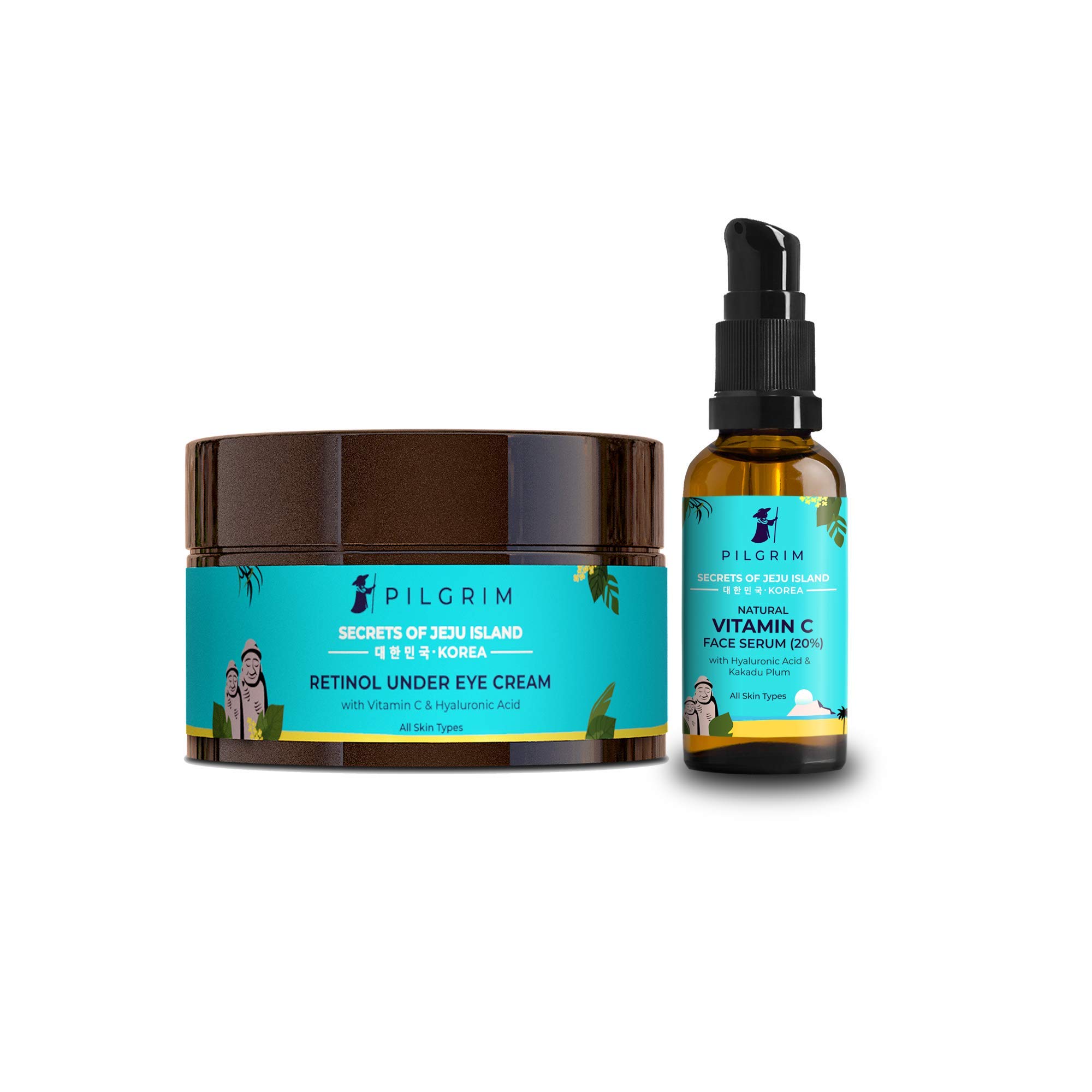 Pilgrim Jeju Light Night Regime | Vitamin C Night Serum 20%, Retinol Under eye cream with Hyaluronic Acid 30g | All Skin | Men and Women | Korean Beauty Secrets