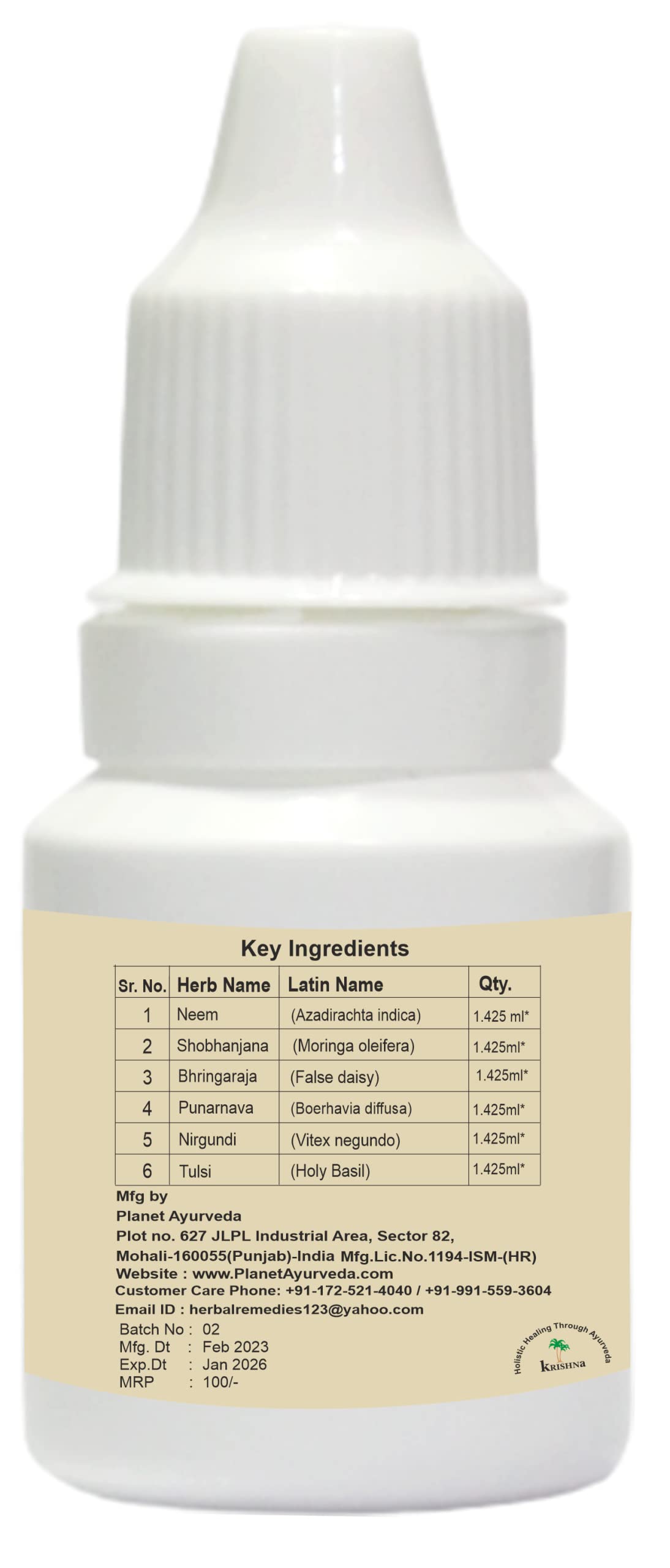 Jasnoor Eye drops are one of the best Ayurvedic eyes drops that support eye health. These drops are specially prepared to maintain the health of the eyes and also help with various eye-related difficulties. The formulation has ingredients like Neem (Azadirachta indica) Shobhanjana (Moringa oleifera) Bhringaraja (False daisy) Punarnava (Boerhavia diffusa) Nirgundi (Vitex negundo) and tulsi (Holy Basil). All these ingredients play a very important role by supporting various parts of the eyes like eye muscles iris retina sclera lens etc. In the case of dosha vitiation Jasnoor eye drops also help with pacification of dosha.