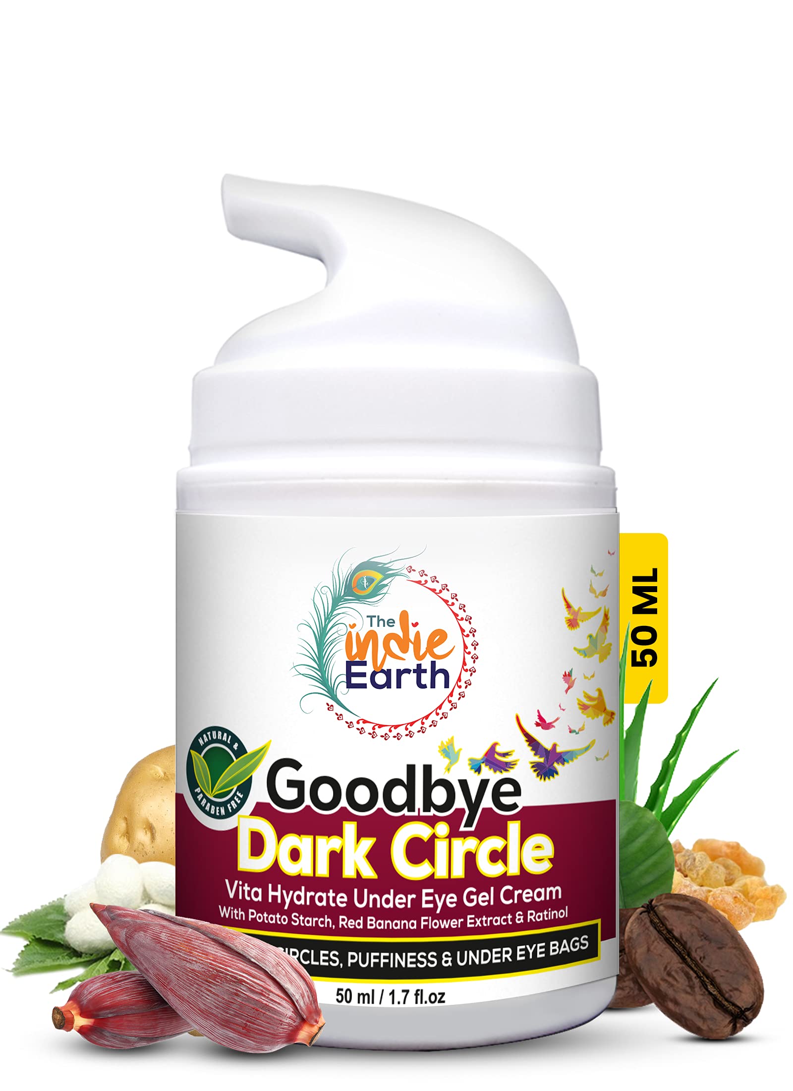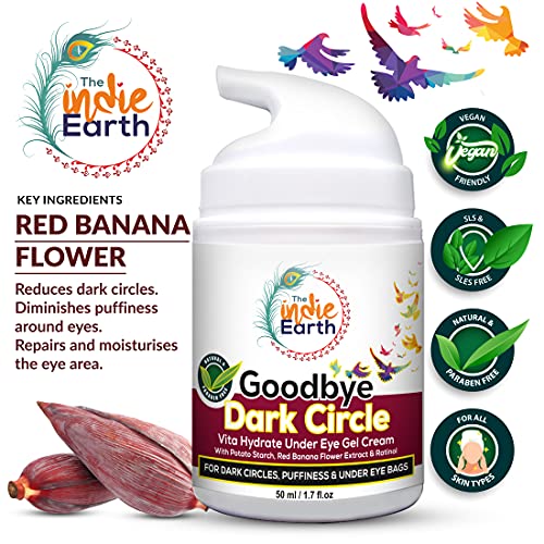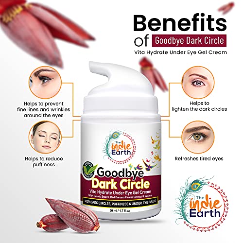 The Indie Earth Good Bye Dark Circles Vita Rich Under Eye Gel Cream with Potato Starch, Red Banana Flower Extract and Retinol 50ml Best Under Eye Gel to Reduce Dark Circles, Puffiness and Fine Lines
