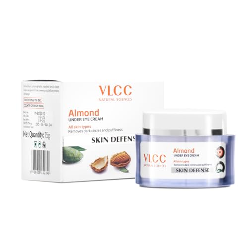 VLCC Almond Eye Cream - 15g | For Dark Circles and Puffiness. Lightweight Eye Cream | With Almond Oil And Vitamin E | Rich in Anti-Inflammatory Properties | Soothing & Calming Eye Cream