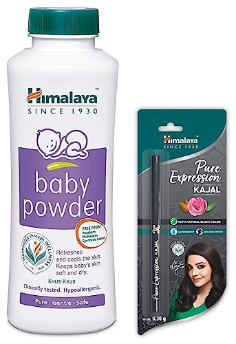 Himalaya Pure Expression Kajal Black Matte Finish 0.30gRetractable kajal pencil for intensely expressive eyes. 100% natural Black colour smudge proof & long stay. Water proof with nourishment of almond oil and rose extracts.Himalaya Herbals Baby Powder (Pack of 200 gram)Himalaya Herbals Baby Powder (200 gram)