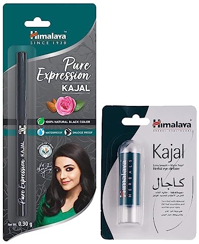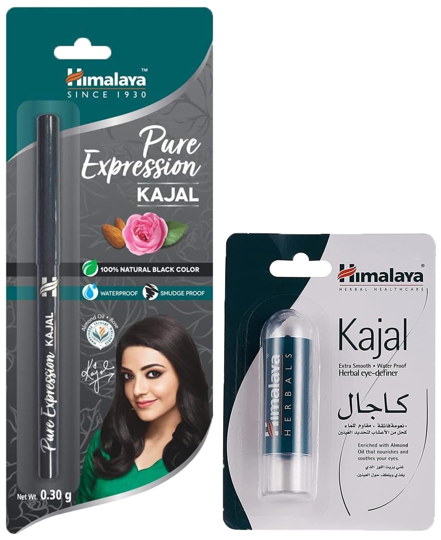 Himalaya Pure Expression Kajal Black Matte Finish 0.30gRetractable kajal pencil for intensely expressive eyes. 100% natural Black colour smudge proof & long stay. Water proof with nourishment of almond oil and rose extracts.Himalaya Herbals Kajal Black 2.7g (Packaging may Vary)Kajal: Define your eyes naturally. What it does: Enriched with Damask Rose and Triphala Himalaya's herbal Kajal combines traditional ingredients like Almond Oil and Castor Oil with Damask Rose for cooling and nourishing the eyes. Triphala a unique herbal composite of three power-packed berries adds luster making the eyes look bright and attractive. Key ingredients: Almond Oil nourishes the lashes. Camphor aids in retaining eye moisture which helps keep the eyes hydrated. Castor Oil is an emollient or skin softener. It also acts as a protective barrier between the skin and harsh environmental conditions such as wind dust and dry air. Damask Rose is known for its cooling properties which help overcome eye strain. Triphala a herbal concoction of the Indian Gooseberry Inknut and Beleric Myrobalan fruits is a well-known eye tonic. Its anti-inflammatory properties help reduce eye redness and swelling.