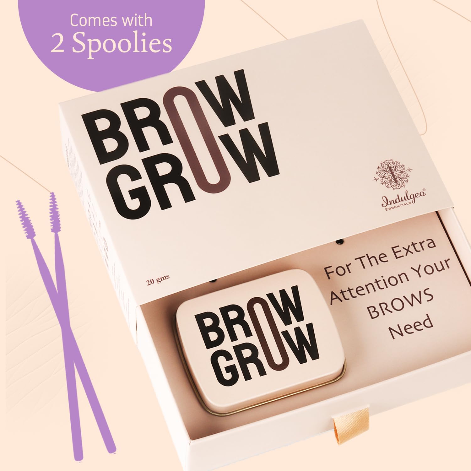 HomeHealth & PersonalSkin CareEye CareEye SerumsIndulgeo Essentials 100% Organic Eyebrow Growth Serum for Thick Eyebrows and Eyelashes with 2 Spoolies Promotes Brow Growth |Made with beeswax Onion Extract & Vitamin E - (20gm) | Eyebrow Gel For Women