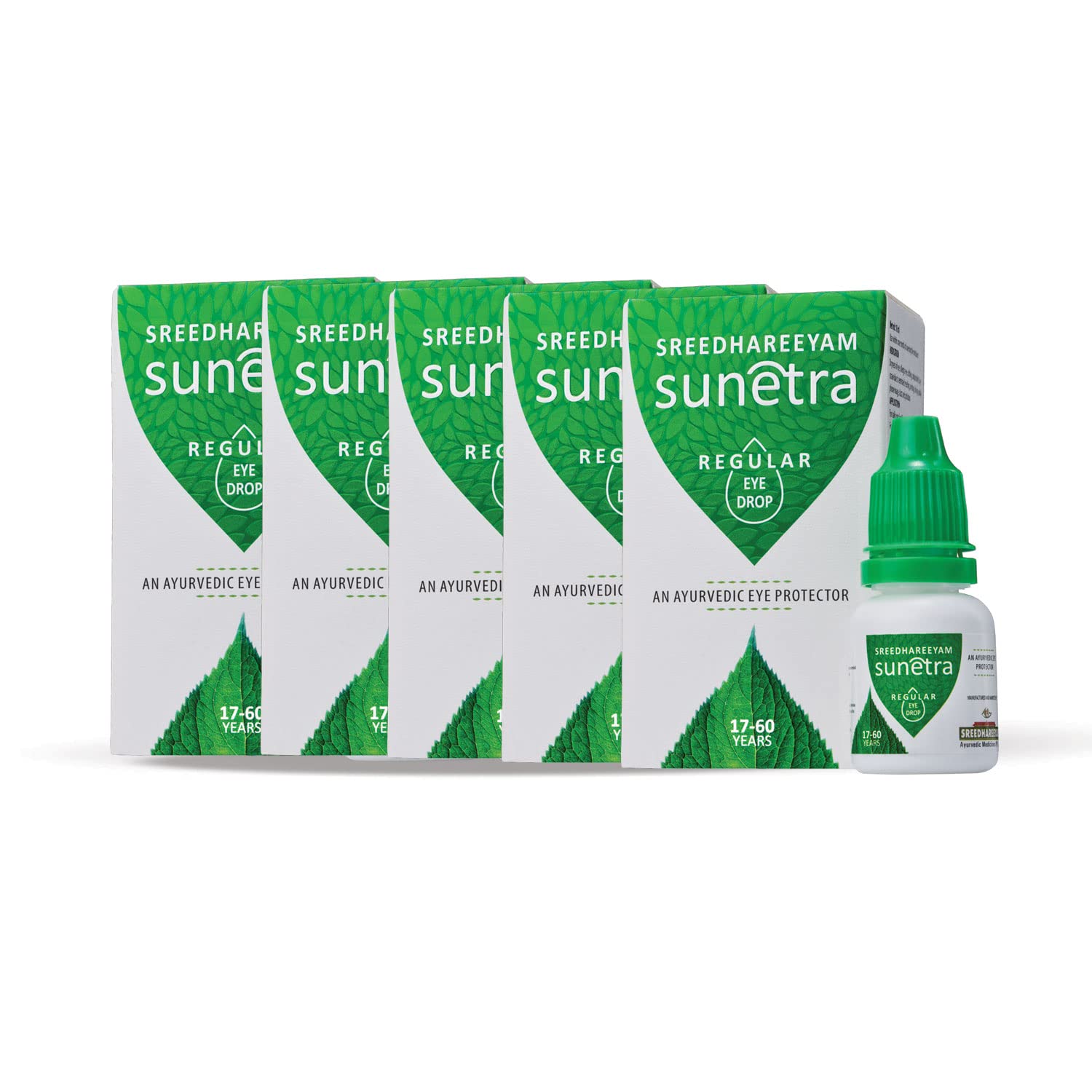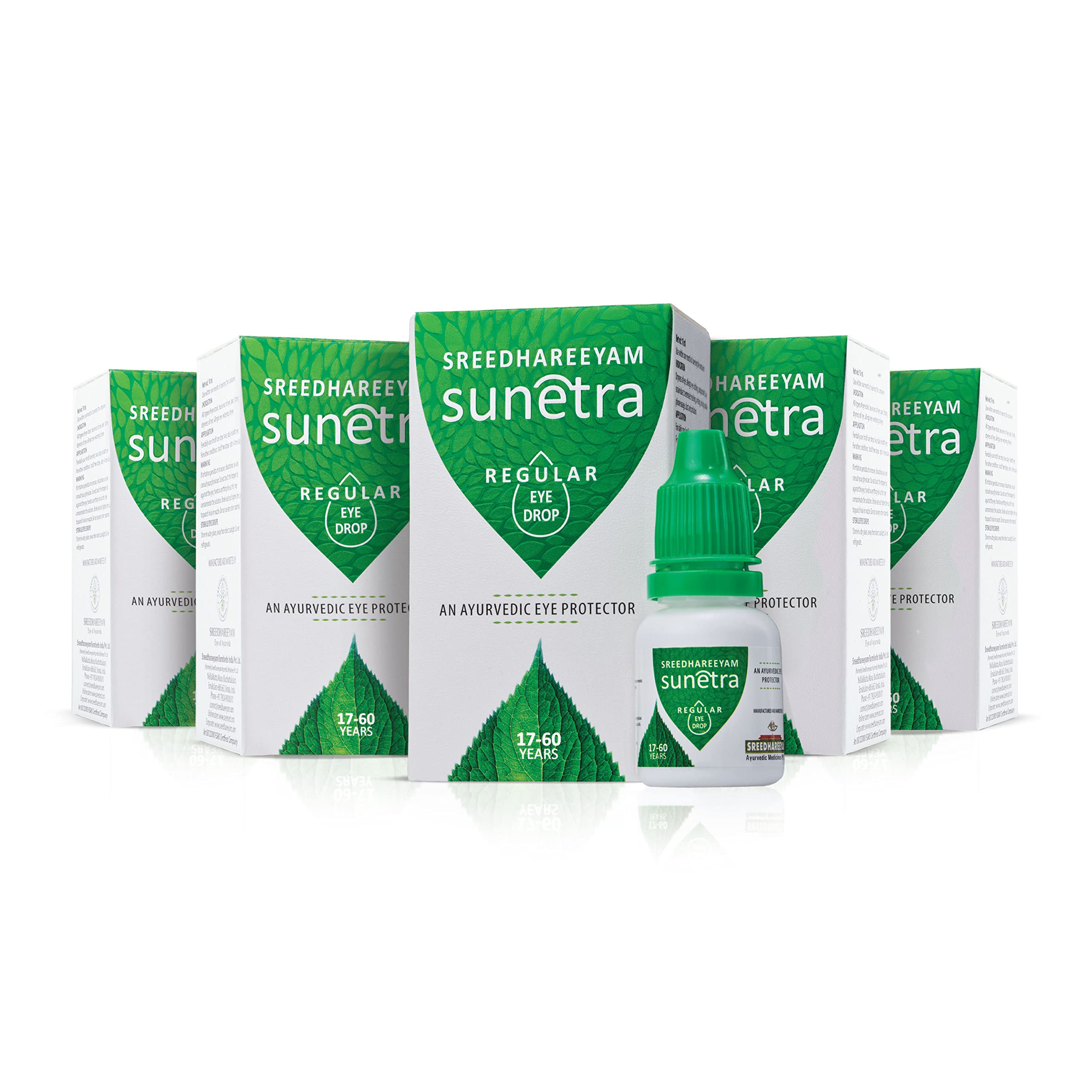 Sreedhareeyam Ayurveda Sunetra Regular (Pack of 5) Herbal Eyedrops (17-60 years age) from Renowned Eye Hospital Relieves Dryness Redness & Itching Cooling Daily-use Eyedrops with Rosewater Holy Basil Leaves and Pure Honey 100% Ayurvedic