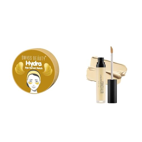 Swiss Beauty Hydra Anti Wrinkle Eye Serum Patch| Treats Dark Circles Fine Lines And Wrinkles | Enriched With Collagen And Aloe Vera Extract | Shade -Gold 60 Pcs|Product Description : The Anti-wrikle Eye serum Mask brightens dark circles and replenished water and nutrients in the skin. The hydrogel eye patch contains sodium hyaluronate and many plant extracts that penetrate and moisten the skn. With gel-like formulation the mask boosts collagen and relaxes your face by removing crow feet and other ageing patterns.Swiss Beauty Liquid Light Weight Concealer With Full Coverage |Easily Blendable Concealer For Face Makeup With Matte Finish | Shade- Yellow 6G |This concealer from Swiss Beauty lets you cover imperfections without looking covered up. Its easily blendable and buildable giving you even coverage with a luminous demi-matte finish. Ultra-lightweight this high tech liquid formula never settles into fine lines and it melds on for a no makeup look while full coverage in an instant.
