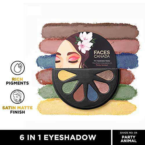 FACESCANADA 6 in 1 Eyeshadow Palette - Party Animal 04, 6g | Olive Butter & Macadamia Oil | Vibrant Colors | Highly Pigmented | Easily Blendable | Silky Satin Texture | No Crease | Cruelty-Free