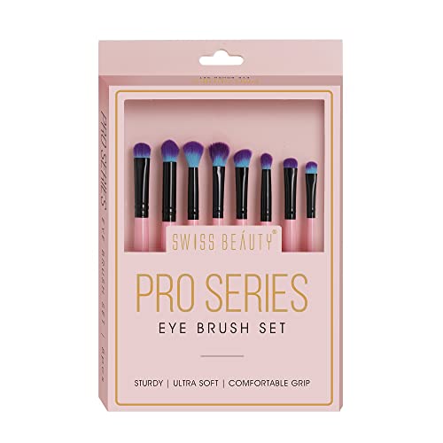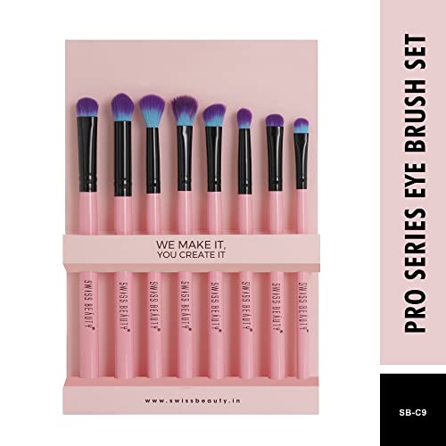 Swiss Beauty's Pro Series Eye Brush Set consists of 8 Professional Makeup Brush Sets with an ergonomic handle that provides perfect grip and control. Slip them into your bag and you can do your whole eye and face make-up on the go!