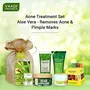 This unique acne treatment set is specifically aimed to acne and fade acne marks and scars. Its main ingredient aloe vera is gentle on the skin and disinfects the area around acne. It s redness and protects sensitive skin from sun exposure pollution and dirt. It also helps regulate excess sebum while retaining the natural moisture in the skin without making it excessively dry.
