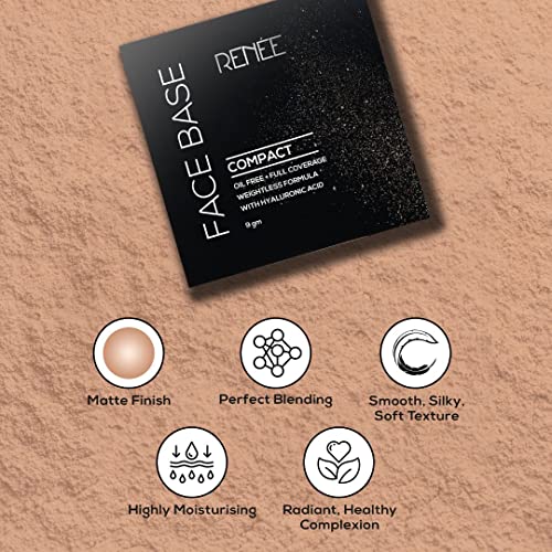 RENEE Face Base Compact Powder Chestnut Beige 9gm, Enriched With Hyaluronic Acid & Vitamin E, Long - Lasting, Easy Blend, Matte Finish, for All Skin Types