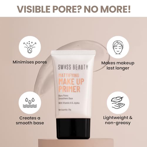 Swiss Beauty primer features an oil free formula that instantly mattifies the skin and creates a perfect makeup base. It's lightformula smooths fine lines & wrinkles. The silky lightformula glides onto skin and minimises the appearance of pores and fine lines to transform your skin surface. Creates a soft texture over the skin for a seamless and long-wearing makeup.