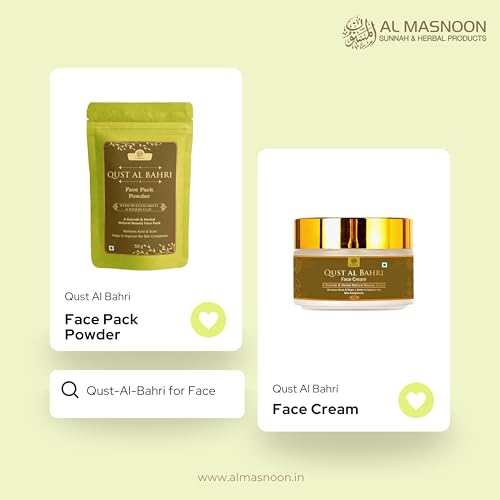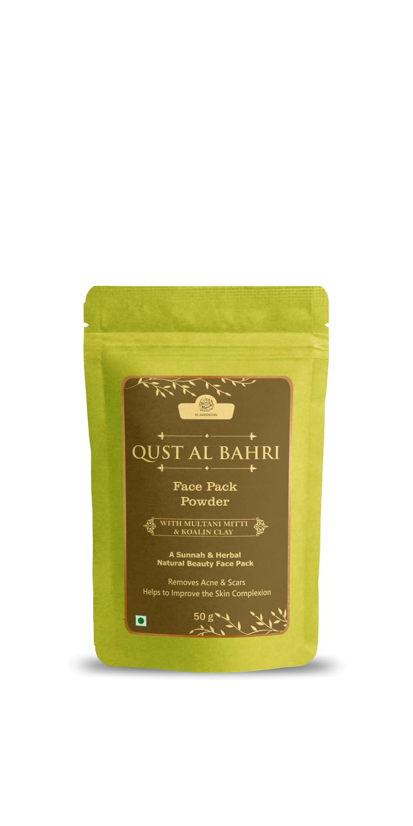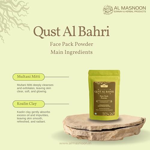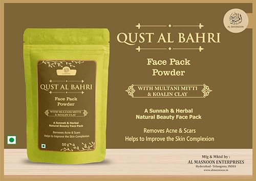 AL MASNOON Qust Al Bahri Face Pack Powder With Koalin Clay & Multani Mitti 50g (Pack of 1) A Sunnah & Herbal Face Pack For Natural Beauty 100% Natural