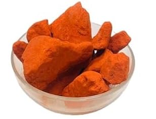 Ayurveda know as Son Geru it is used for medicinal purpose after purification. It is sweet astringent anti-phlegmatic anti-bilious and cooling. It shows beneficial effects in skin diseases piles bleeding disorders ulcers boils urticaria vomiting hiccups etc.Gairika (Red Ochre) a silicate of Alumina and oxide of Iron.