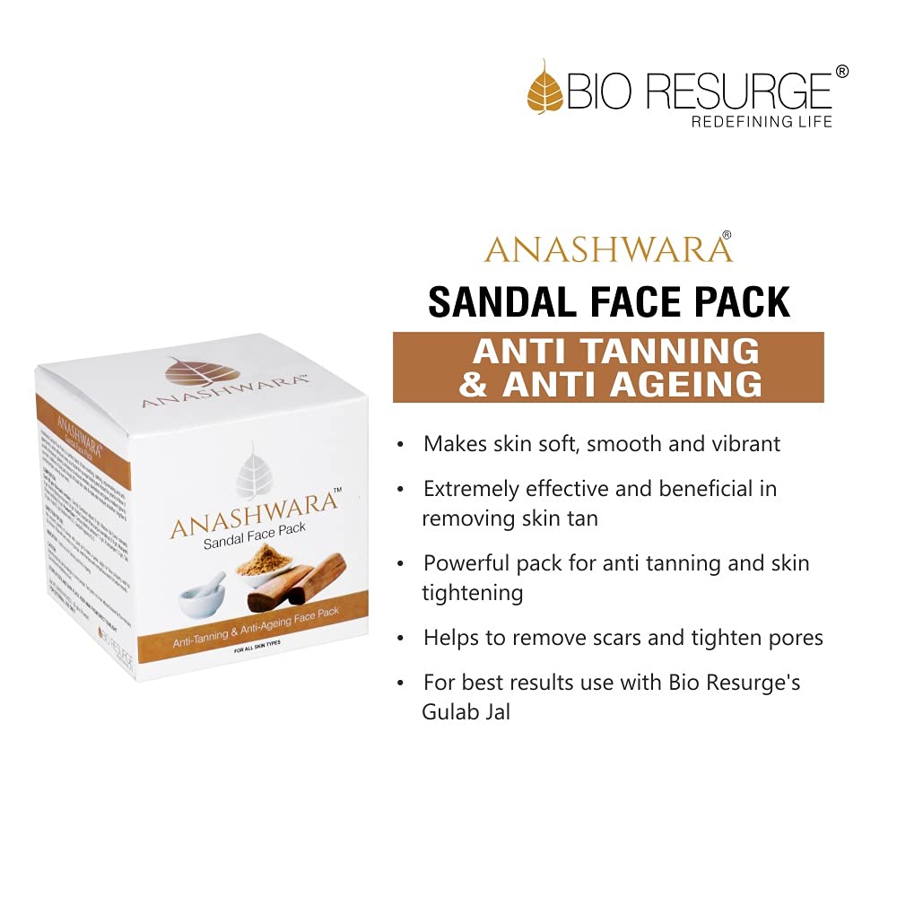 Bio Resurge Life Anashwara Sandalwood powder Face Pack for Anti tanning and anti ageing | d tan face pack 60 Gms