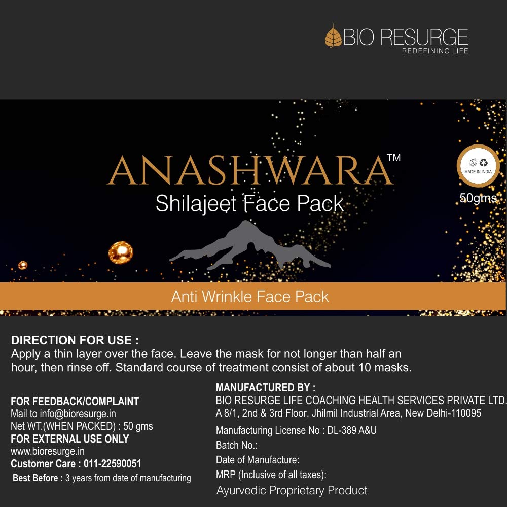 BIO RESURGE LIFE Anashwara Shilajit face Pack Anti Wrinkle Removes Pigmentation and Skin Tightening Face Pack | repairs damaged tissues removing the dead cells (50 gm)