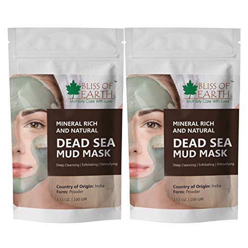 Bliss of Earth� 100% Pure Dead Sea Mud | 2x100GM Powder | Great For Facial Treatment, Acne, Oily Skin & Blackheads | Minimizes Pores & Improves Overall Complexion |