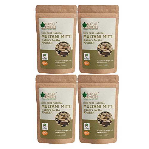 Bliss of Earth™ 100% Pure Multani Mitti Powder | Fuller's Earth Powder | 4x100GM | Great For Hair, Face, Skin