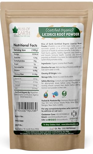 Bliss of Earth Organic Licorice Root Powder For Eating Mulethi Powder Organic For Skin Whitening Hair & face 453 GM Pack Of 3