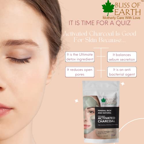 You may crossed paths with it at a local supermarket or scrolled down an Instagram diva pouting with a black face mask on. Perhaps grossed out at first but your inquisitive mind would have had nudged you to wondero What is that black thingy that is being raved for skin care? Will it kiss life into my skin?o The answer to the latter is a resounding yes and to the former is hold your breath Bliss of Earth 100% Original Activated Charcoal (or carbon). Shell-shocked upon reading ocharcoalo? Dont be because the beauty benefits of charcoal are too good to ignore. A power-packed beauty ingredient that sucks up deep-seated dirt grunge and toxins ensconcing in your skinolayers activated charcoal pulls them out with a vengeance throwing them out of their cushy abode thus leaving your skin deeply cleansed clear fresher and smoother. A perfect weapon for acne-prone oily skin we hear you say that. Annoyed by acne skin inflammation sudden breakouts or flare-ups? Bliss of EarthoActivated Charcoal is your skinoknight in shining armour.