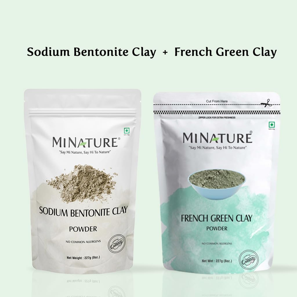 Combo Pack of French Green Clay and Sodium Bentonite Clay | For Face and Skin | Cleanser Detox Bath Face Mask| Pure & Natural Mask | 227g*2