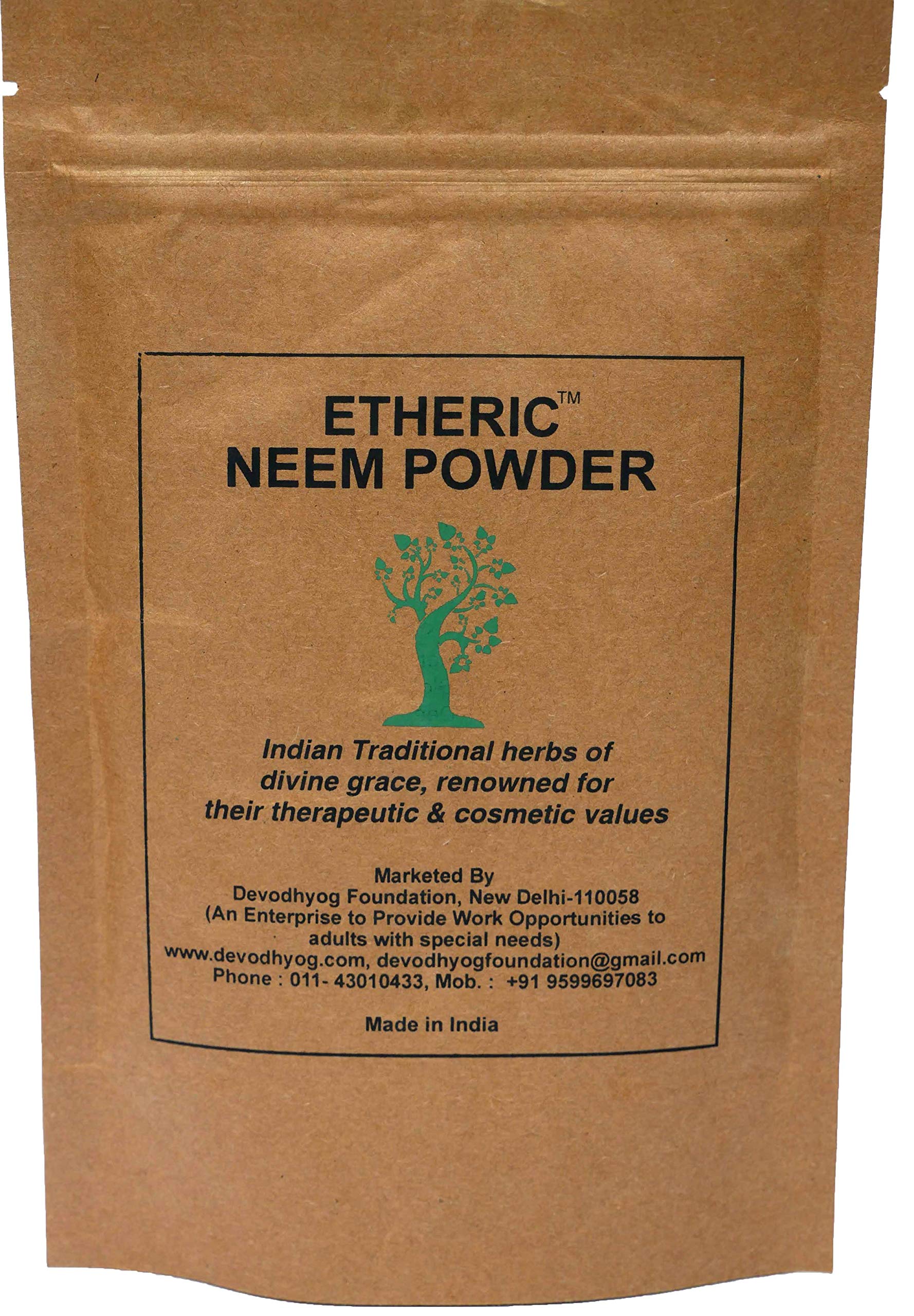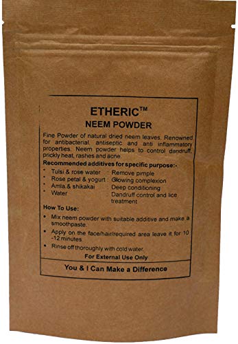 Devodhyog proudly presents Etheric Neem Powder (100 gms). This product is 100% Herbal and naturally homemade. Fine powder of wild Neem Leaves (Indian Lilac).Neem proves to be a miracle for skin and scalp. Neem has anti- fungal and anti- bacterial properties and rich in Vitamin C which is a boon for people with sensitive or oily skin.