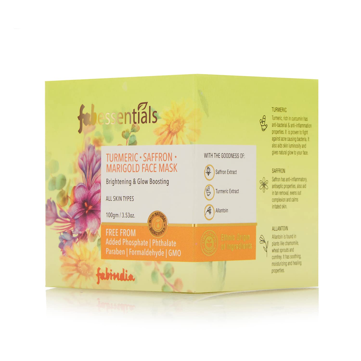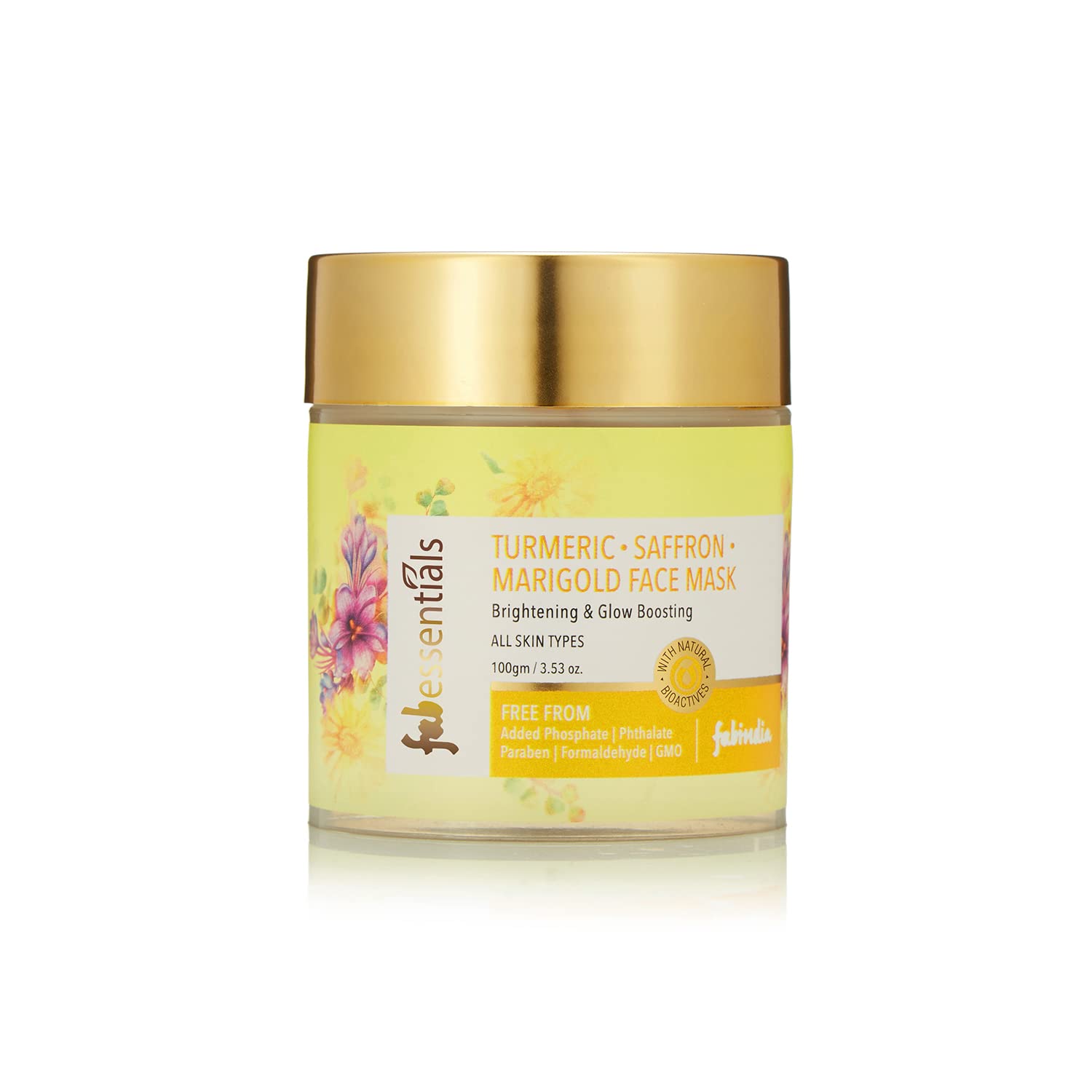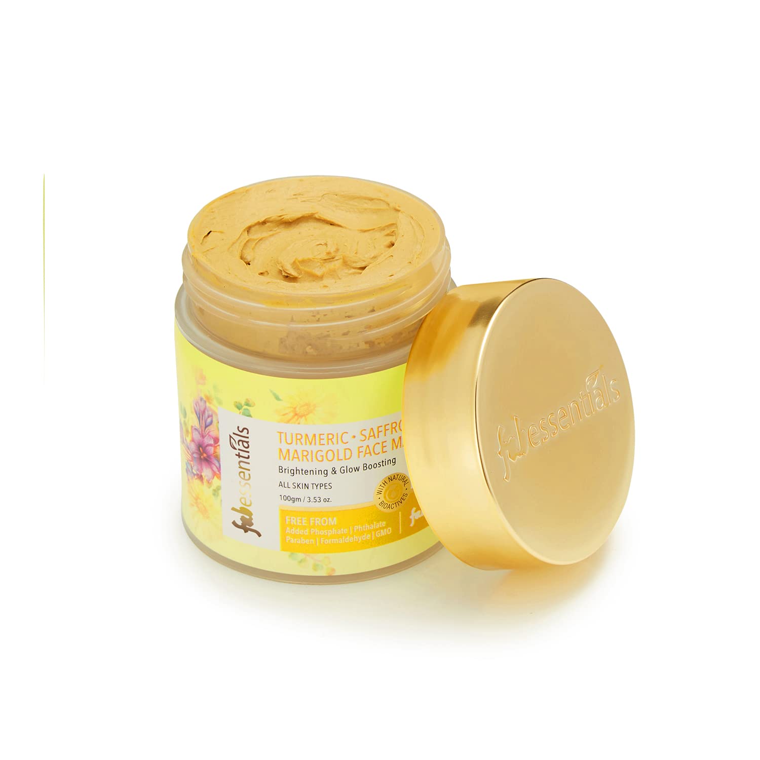 Fabessentials Turmeric Saffron Marigold Face Mask - 100gm| Kaolin & Bentonite Clay | Fairness Facial Mask | Removes tan and boosts glow |Paraben Free | Face Mask For Glowing Skin