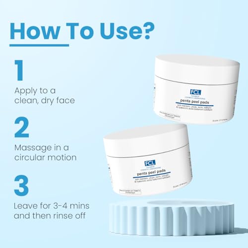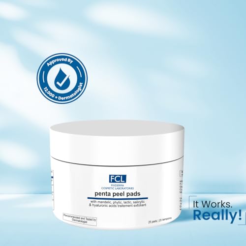 FIXDERMA COSMETIC LABORATORIES Fcl Penta Peel Pads, Exfoliant, Removes Dead Cells, Reduces Fine Lines & Wrinkles, Gentle & Safe Peeling Pads, Improves Skin Texture, Shrinks Open Pores, 25 Pads