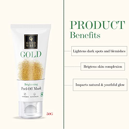 Good Vibes Gold Brightening Peel Off Mask, 50 g Deep Pore Cleansing Peel-Off Face Mask For All Skin Types, Anti-Bacterial & Helps Remove Acne, No Parabens, Sulphates & Mineral Oils