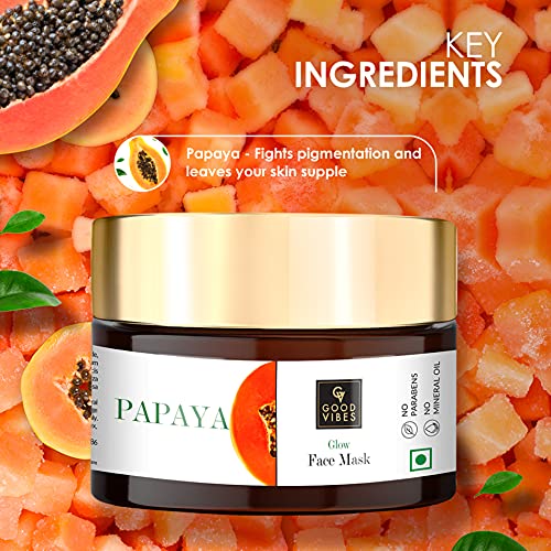 Good Vibes Papaya Glow Face Mask, 50 g Deep Pore Cleansing Moisturizing Face Mask For All Skin Types, Helps Reduce Wrinkles & Signs Of Ageing, No Parabens & Sulphates