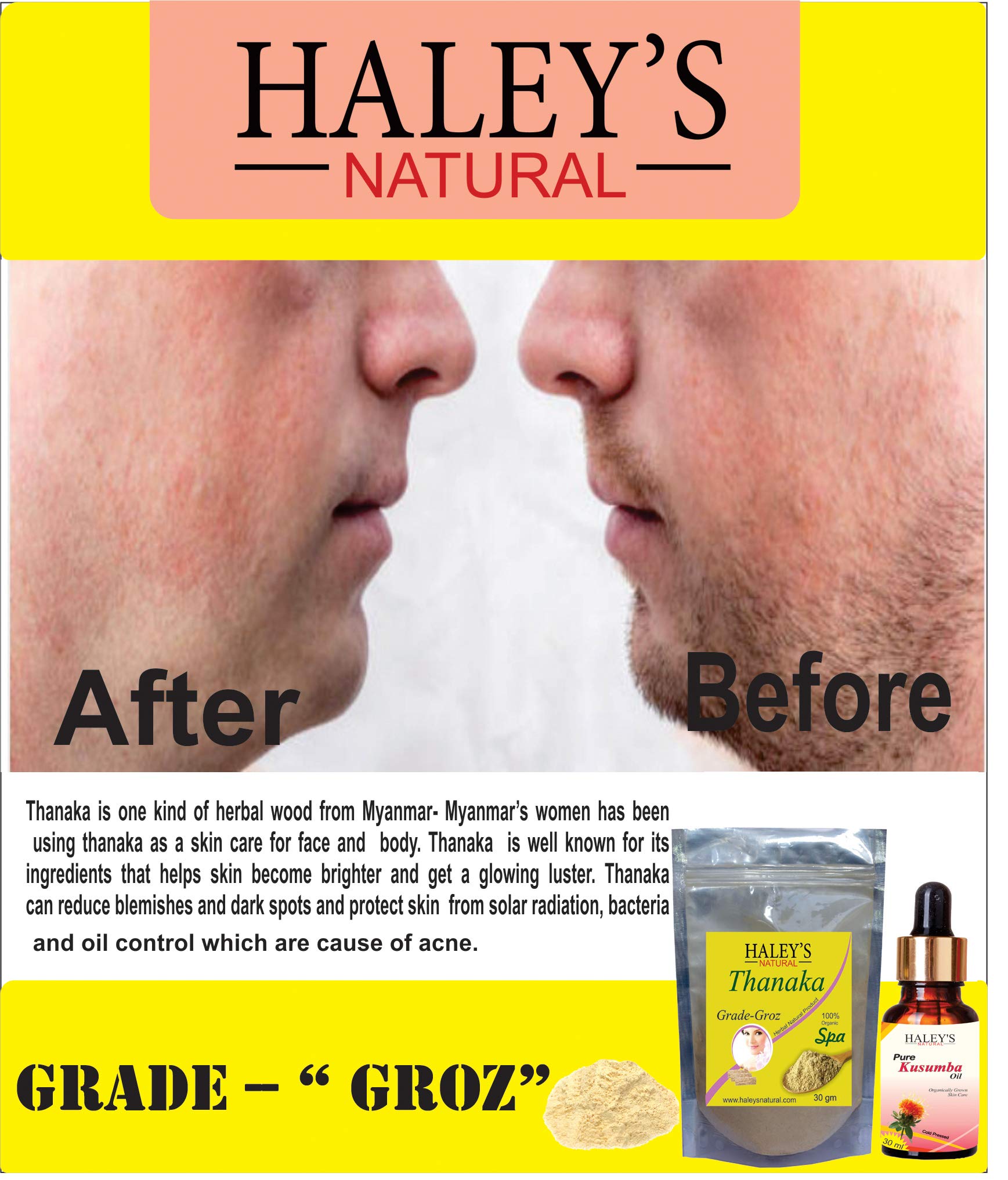 Haley's Natural Thanaka powder 50g & Kusumba Essential Oil 50 ml for permanent hair removal