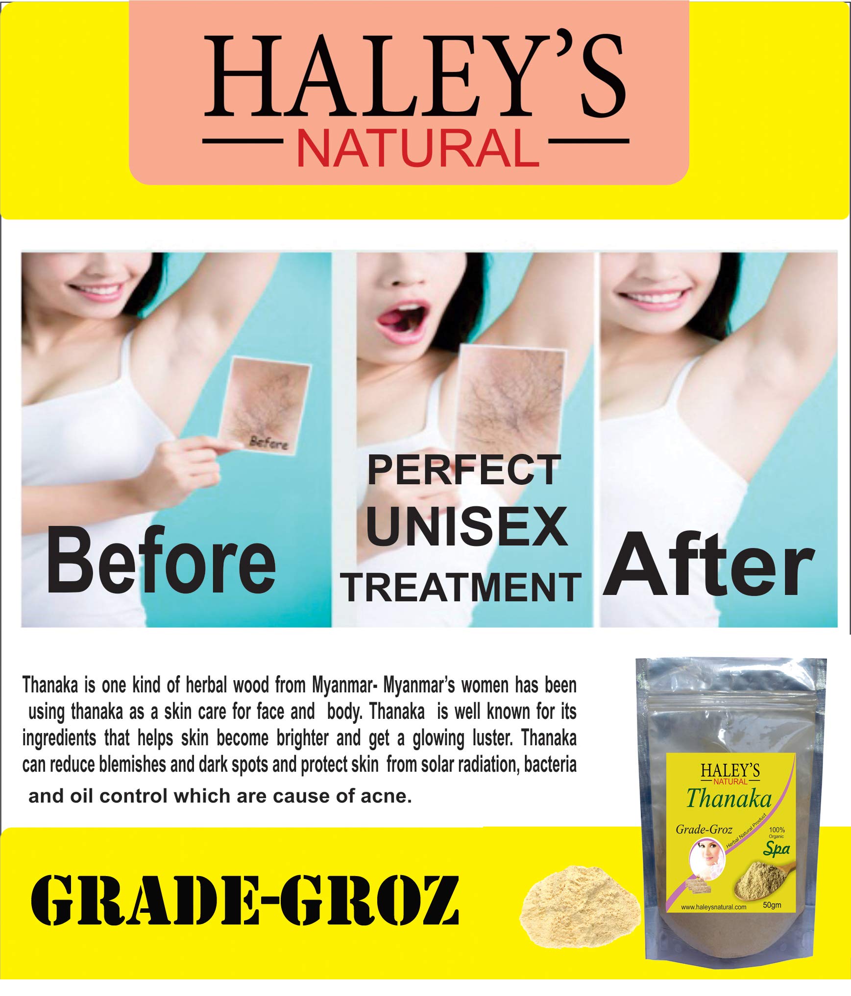 Haley's natural Thanaka Powder For Permanent Hair Removal Anti Acne Aging Whitening Scrub Sunscreen Face Mask 50g