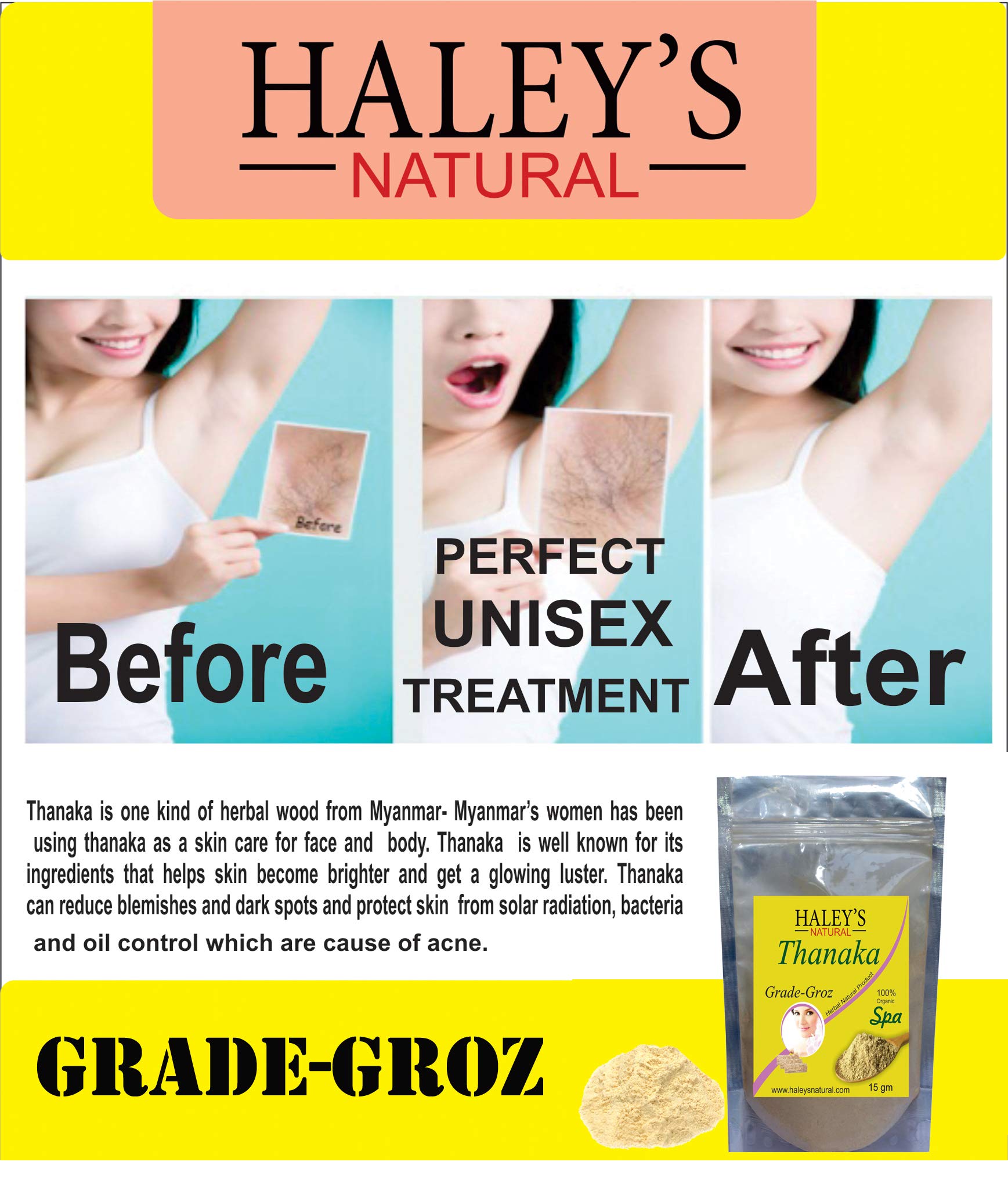 Haley's Natural Thanaka Powder for permanent hair remove utan powder-30g