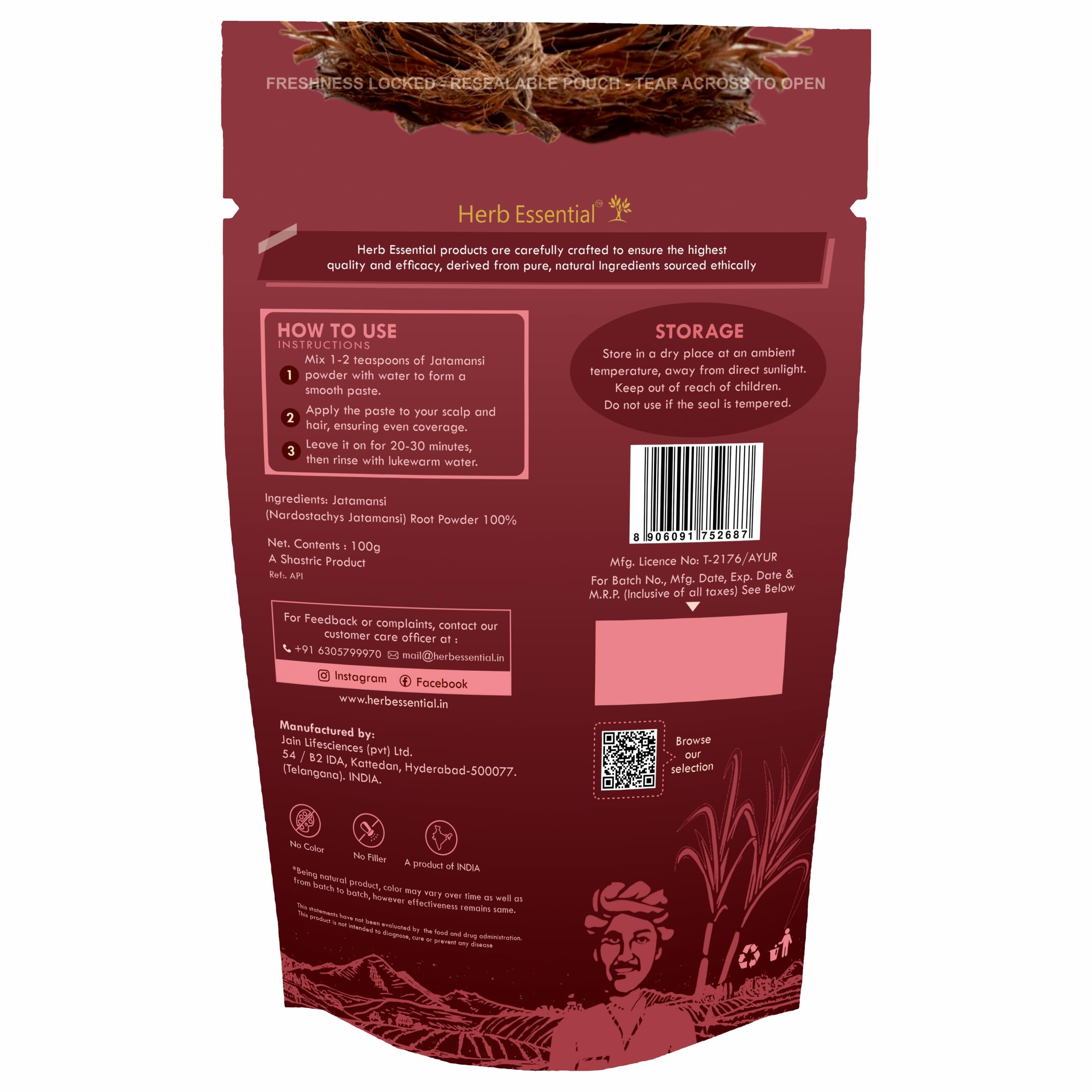 Herb Essential Jatamansi Root Powder 200 g | Promotes Hair Growth | For Strong Shiny and Silky Hair | For Dandruff & Spilt Ends Free Hair | Moisturizes Scalp | 100% Pure and Natural