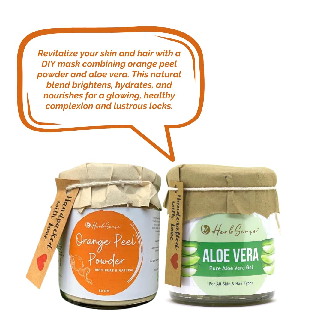 HomeHealth & PersonalSkin CareFace CareFace MasksHerbsense Orange Peel Powder & Pure Aloe Vera Gel Combo Pack For Healthy Clear & Glowing Skin Face Pack(Aloe Vera Gel 150 GM Orange Peel Powder 80 GM Glass Jar Packing)
