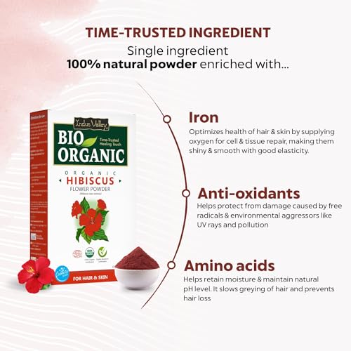 Indus Valley Bio Organic Hibiscus Powder is a natural product enriched with the benefits of Hibiscus extracts. With its natural goodness it is suitable for both hair and face care. Extracts of Hibiscus dry flower organic in it is an efficient remedy to put a stop to hair fall advances hair strands and covers grey hairs. Hibiscus is rich in antioxidants purify your skin by breaking down dead skin and help to control acne breakouts.Reduces the appearance of large pores and keeps the complexion smooth soft and supple. Bio Organic Aloe Vera Gel works magic in terms of skin and hair care. This non-greasy & pure non-toxic aloe vera gel happens to be lightweight in nature capable of penetrating into the deepest layers of the skin while giving you smooth and radiant complexion with a natural young look. Aloe Vera is known to be a natural moisturizer. It has hydrating properties and absorbs into the skin like magic. The antibacterial and anti-inflammatory properties of aloe vera can help keep acne at bay. Additionally it helps to increase the production of collagen in the body and skin elasticity. Aloe Vera gel for hair helps to reduce dandruff restricts hair fall along with a host of other benefits in the arena of hair care. It helps to condition the hair and soften them. Regular usage of Aloevera Gel to the hair and scalp helps to maintain the vitality of the hair and its shine.