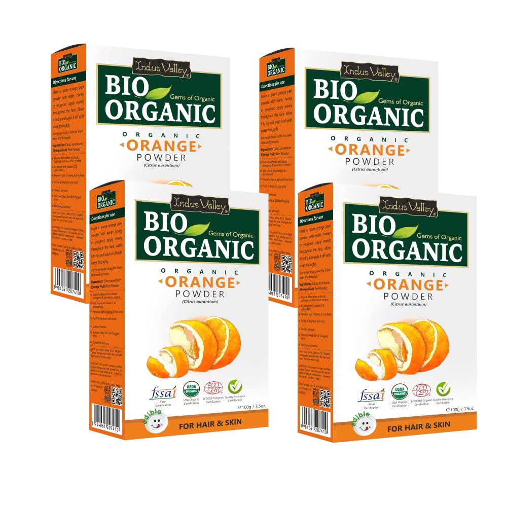 Indus Valley Bio Organic Orange Peel Powder Natural & Organic for Skin Lightening Face Pack Care Vitamin C and antioxidants add glow Certified FSSAI USDA Organic and ECOCERT- (100 * 4=400g)