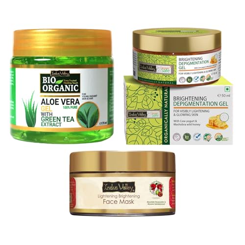 Indus valley Face care combo of Aloe vera gel, Depigmentation Gel and Skin Lightening Brightening Face mask (175ml+50ml+50ml=275ml)