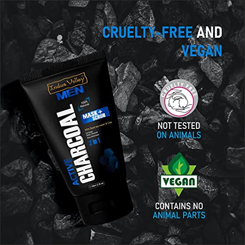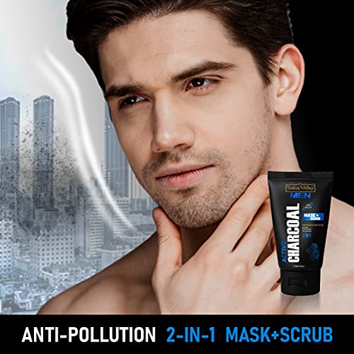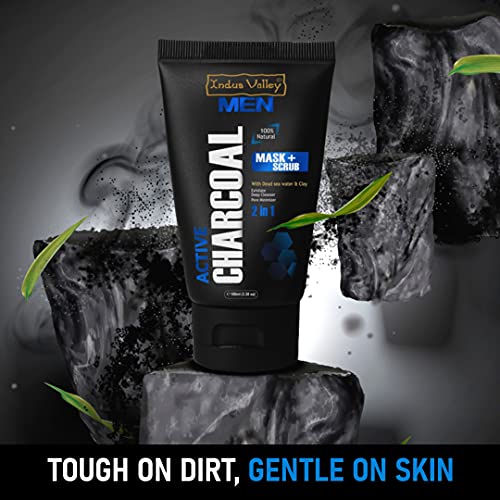 INDUS VALLEY Men 100% Natural 2 in 1 Active Charcoal Face Mask and Scrub With Dead Sea Water & Clay - (100ml)