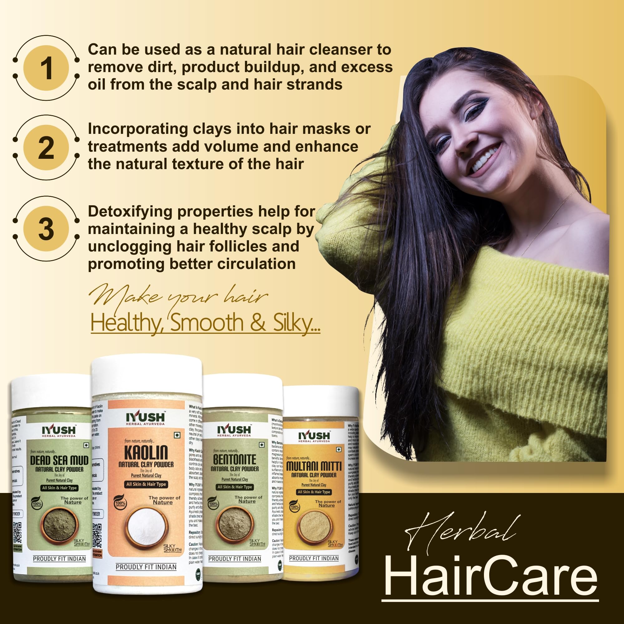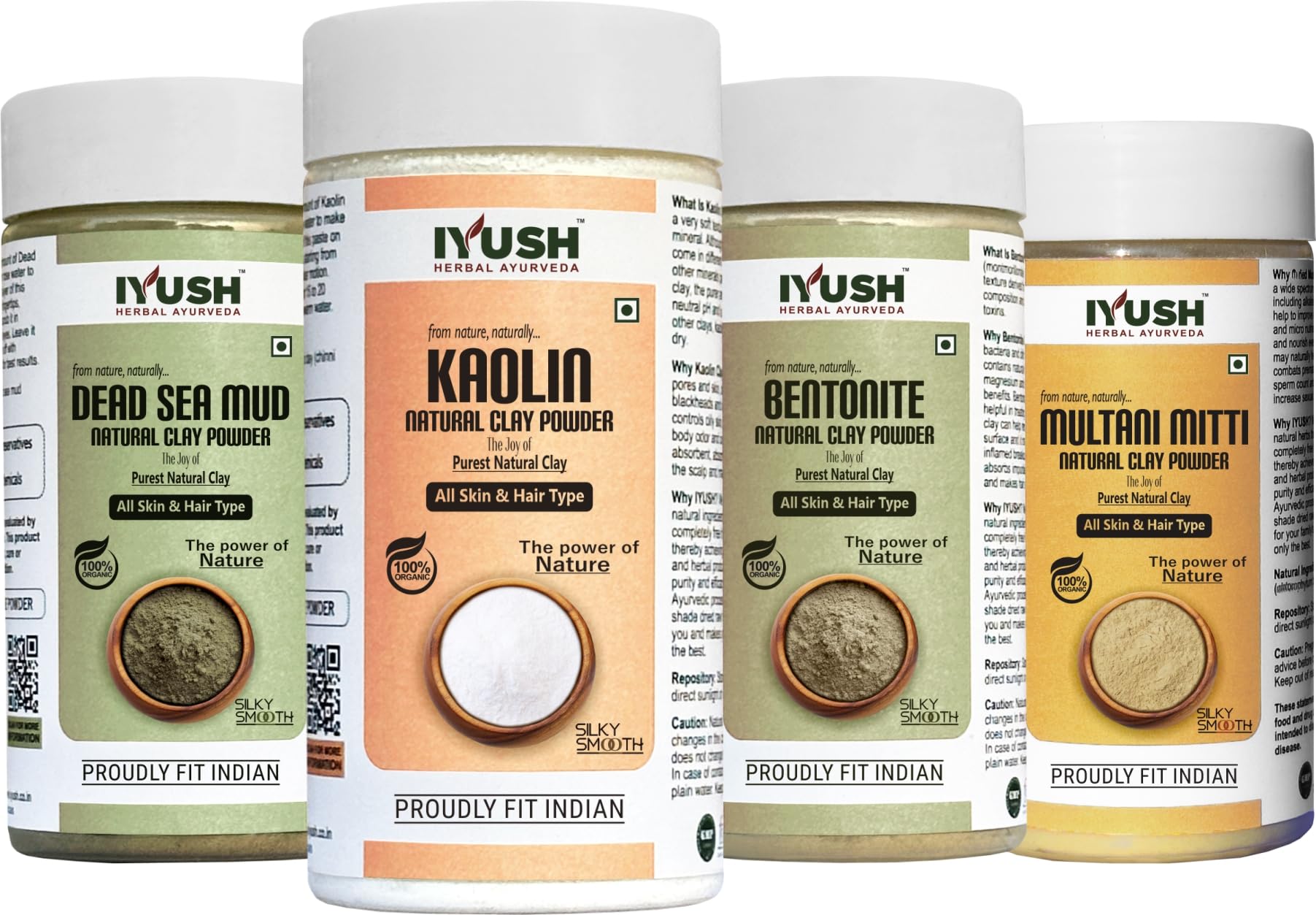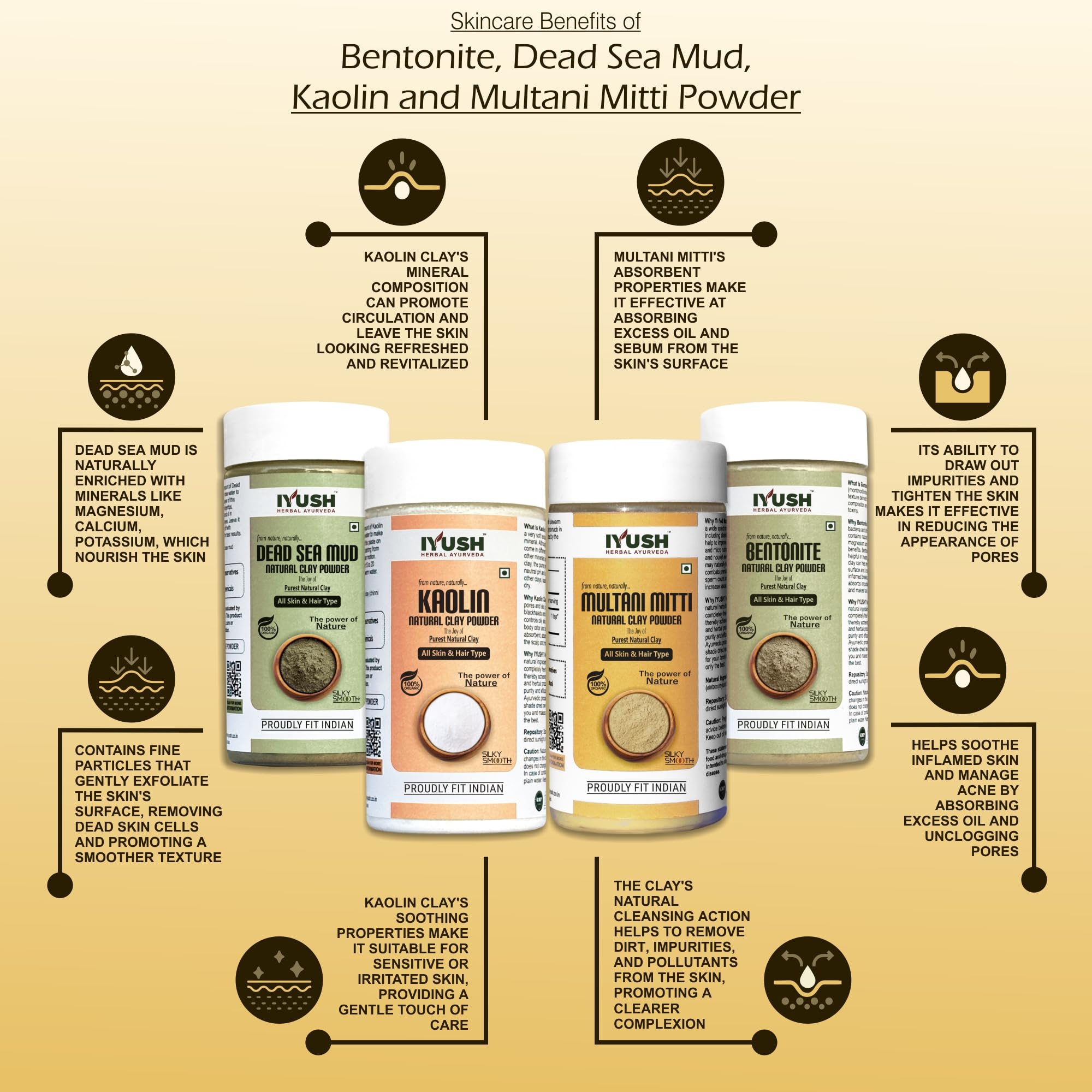 IYUSH Herbal Ayurveda Bentonite Clay + Kaolin Clay + Dead Sea Mud + Multani Mitti Powder (Total 450gm 100gm each)