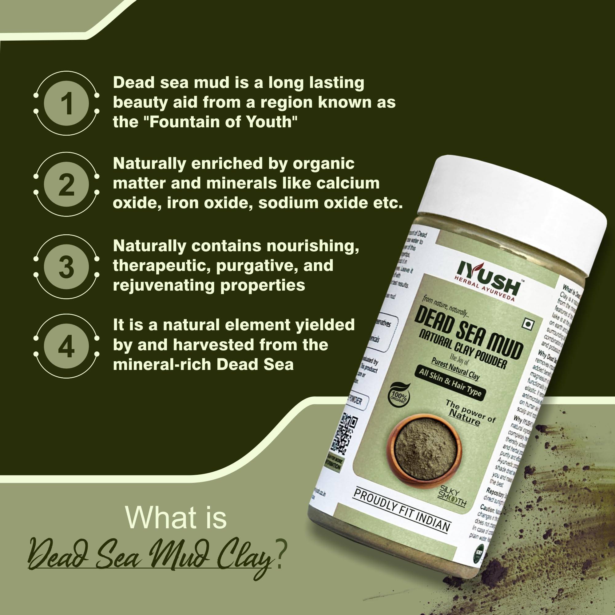 IYUSH Herbal Ayurveda Dead Sea Mud Powder 800gm | Dead Sea Mud Mask Powder | Mud Pack for Face | Clay for Masks | Clay Powder for Face | De Tan Pack to Open Pores | Clay Mask Powder | 400gm each